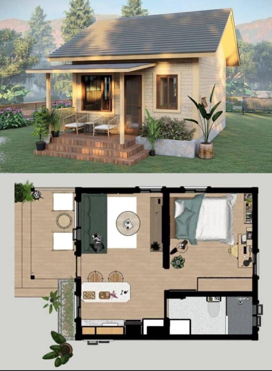 The standout feature of this tiny house design is the loft. At just 3×6 meters (approximately 18 square meters), this home is small, but the addition of a loft provides the perfect solution to create more usable space. The loft area is ideal for a bedroom, offering privacy and separation from the main living space. Accessed by a compact staircase or ladder, the loft maximizes vertical space, giving you more room to move around in the ground area while still offering all the comforts of a traditional home.