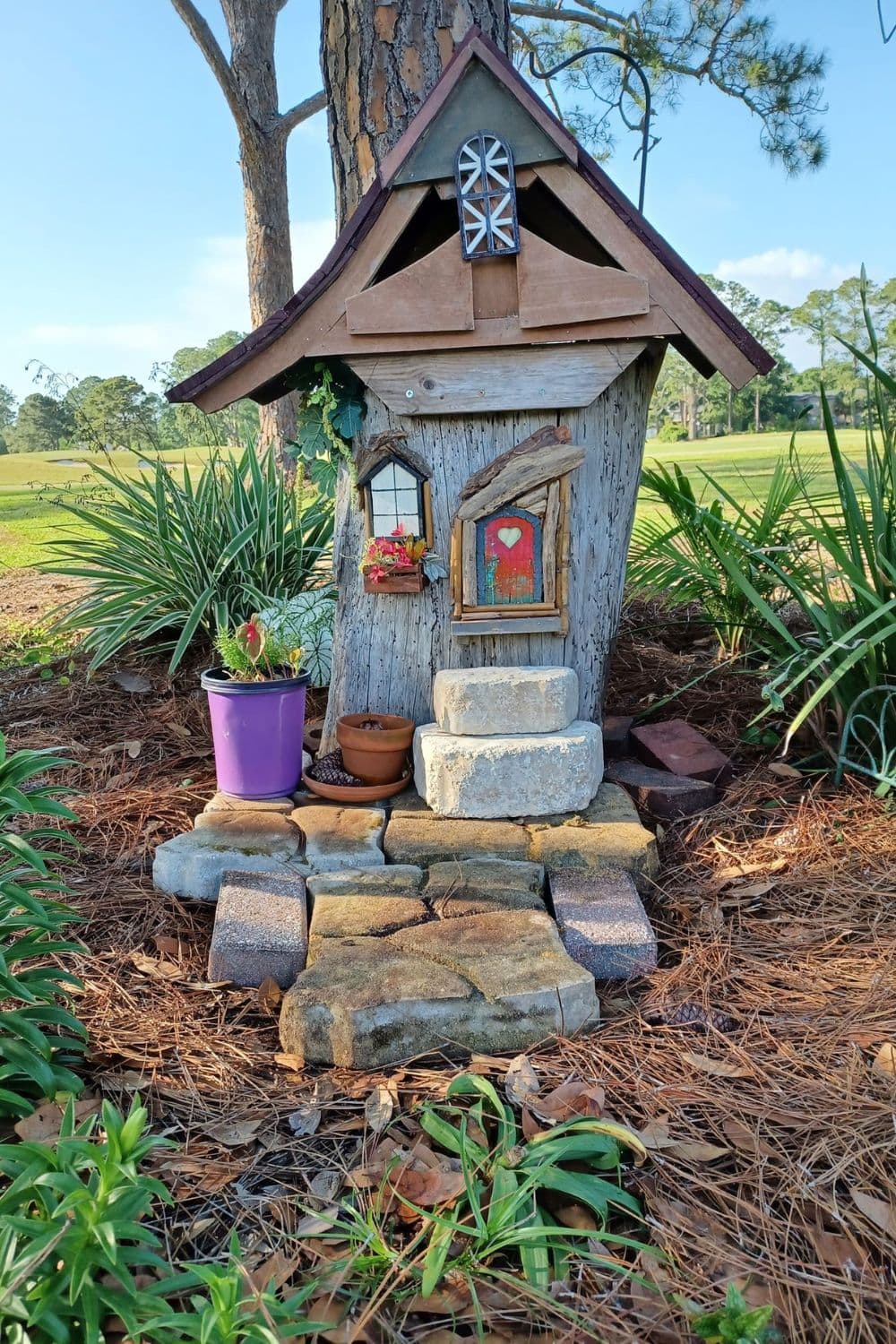 Fairy Garden Base: Create a magical miniature world on a stump.