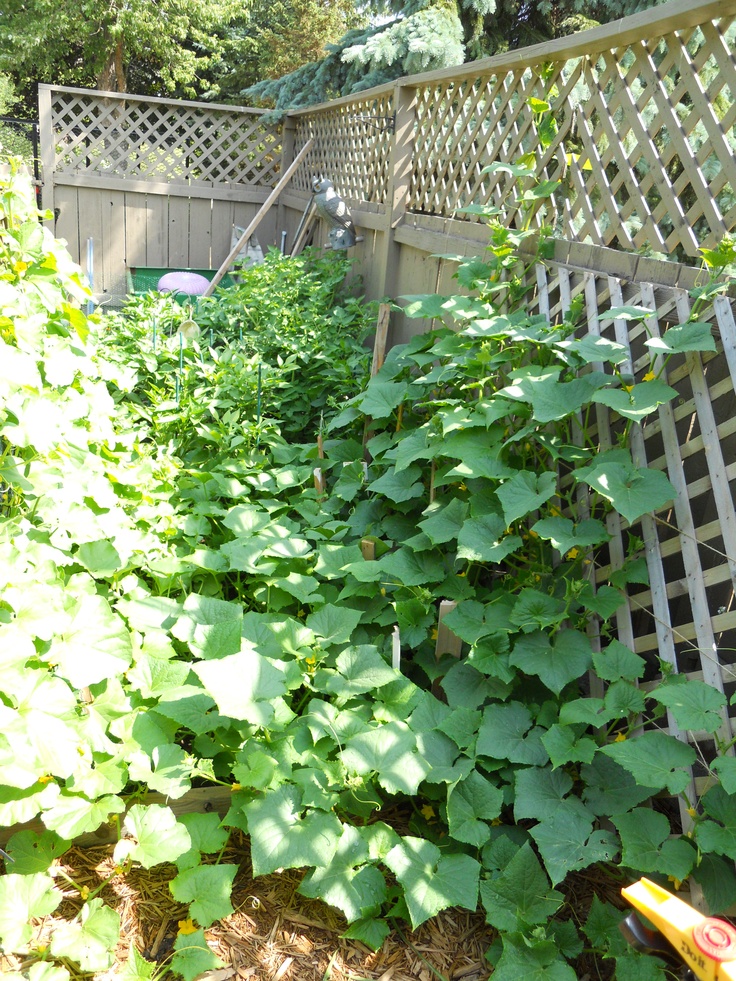 Plant cucumbers along an existing fence and train the vines to climb for a no-cost trellis solution.