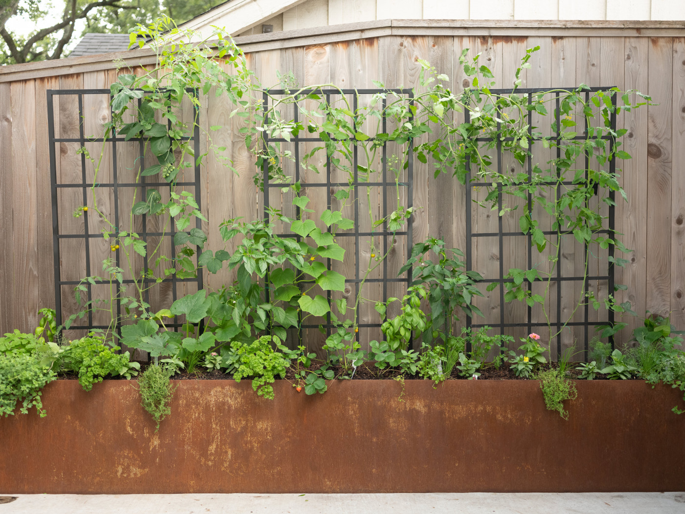 A simple angled trellis helps vines climb easily while directing growth in one direction.