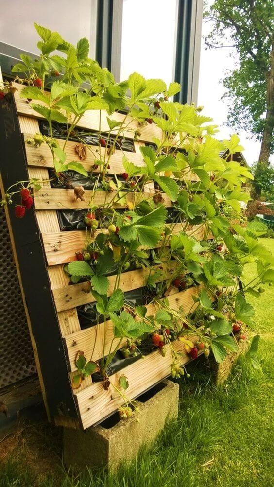 Fabric or plastic pocket planters can be mounted on walls, allowing you to grow strawberries vertically.