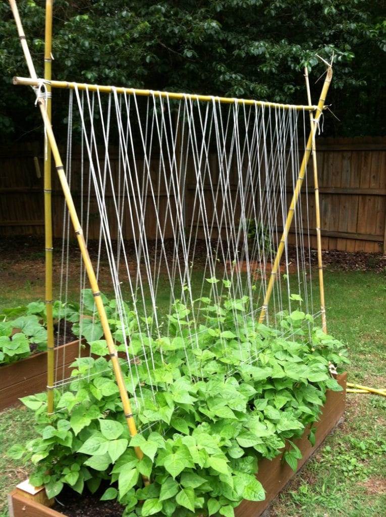 Tie bamboo poles together vertically or in a teepee shape. This low-cost option is perfect for raised beds and small gardens.