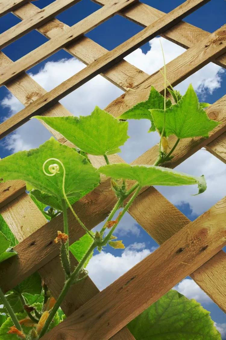 Using a trellis helps cucumbers grow straighter, stay cleaner, and receive more sunlight. Vertical growing also reduces pest problems and allows gardeners to grow more plants in less space.