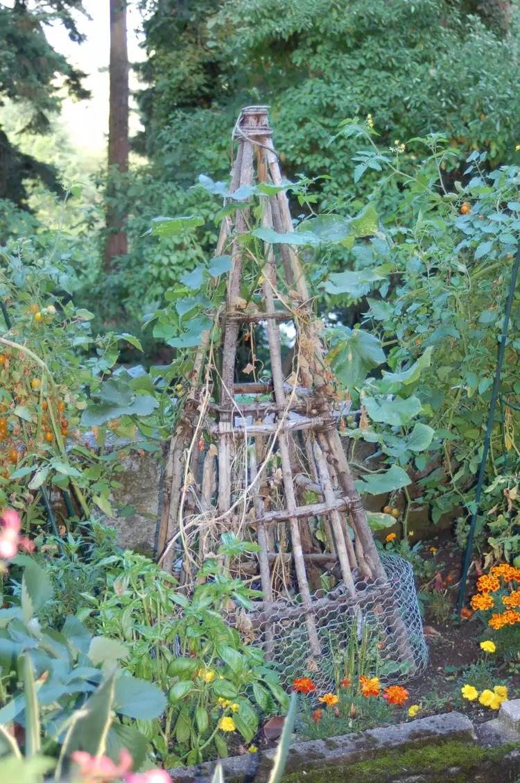 Stand an old wooden pallet upright and secure it to posts. The slats provide natural climbing support.