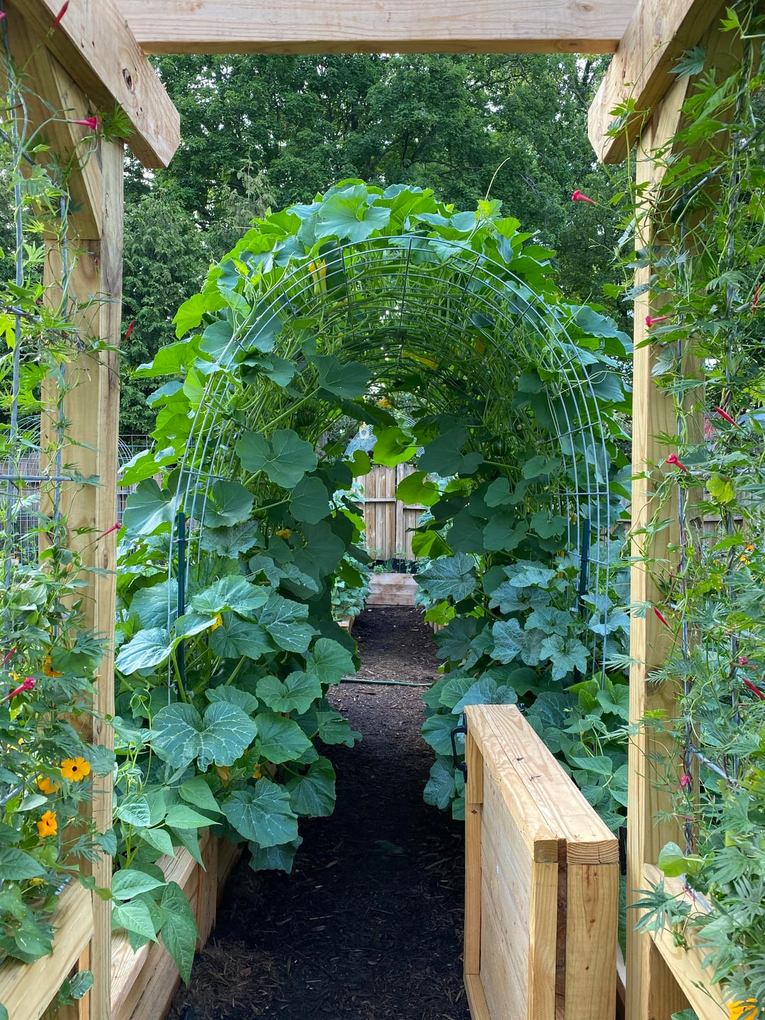 Wire panels provide strong support and allow cucumber tendrils to grab on easily as they grow. -
