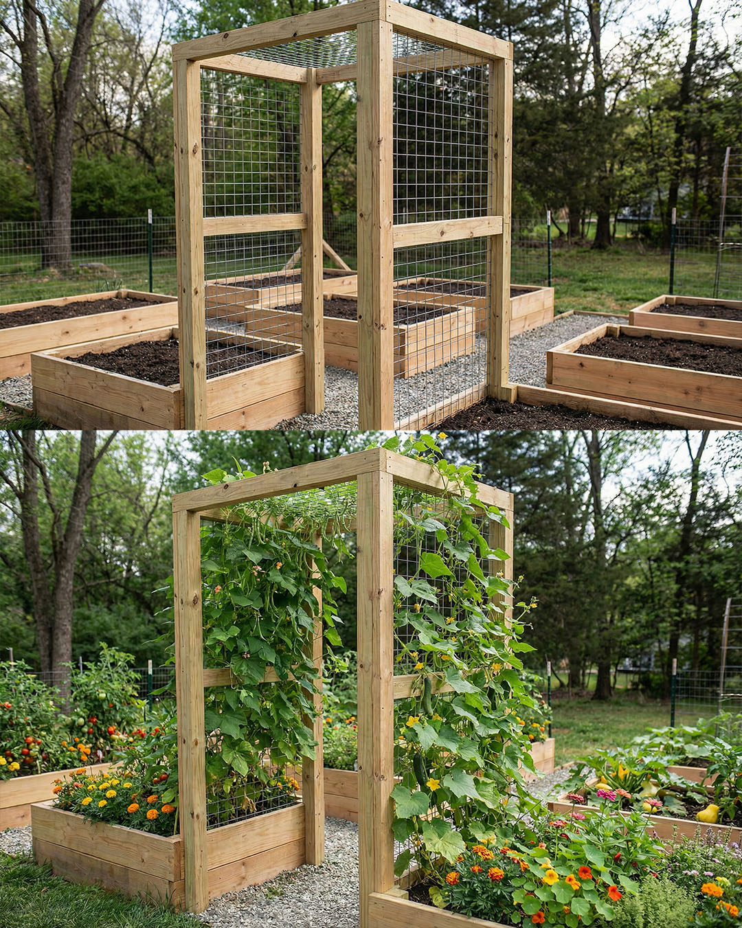 Why It’s Worth the Effort A raised-bed trellis like this increases yield without increasing footprint, keeps the garden tidy, and adds structure and beauty at the same time. Once built, it becomes a centerpiece of the garden that works harder every season it’s used.