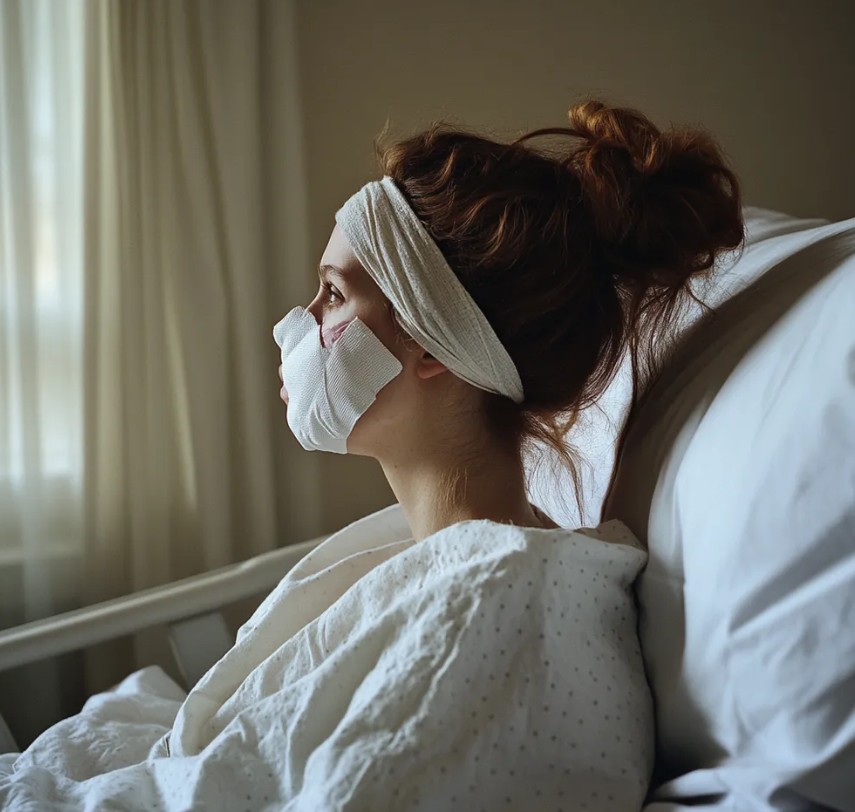 A woman with bandages covering her face | Source: Midjourney