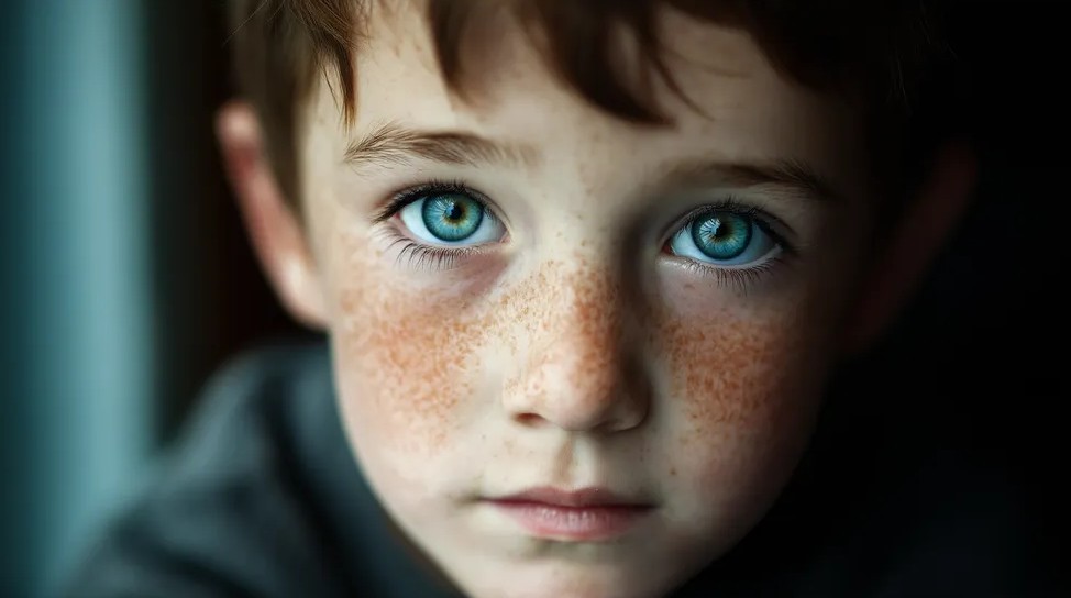 A few seconds later, a small boy peeked around the corner. Freckles across his nose.