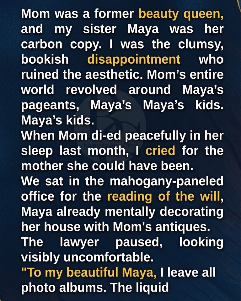 If you are reading this, the shock in the room is likely palpable, and Maya is undoubtedly making a scene. For thirty years, I prioritized a pretty face and a pageant crown over the quiet, brilliant daughter standing right in front of me. Maya was my reflection, and in my profound vanity, I fed her absolute worst traits. I funded her extravagant lifestyle, bailed out her hidden debts, and watched her become a woman who values things over people.