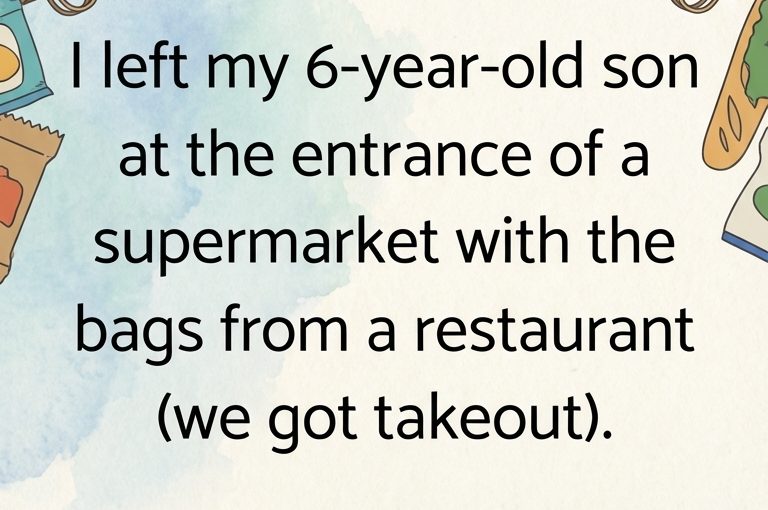 I left my six-year-old son standing near the entrance of the supermarket, holding two takeout bags we had just picked up from a restaurant nearby. It was supposed to be quick—just a fast stop to grab a few groceries before heading home. He was tired, I was tired, and I figured it would be harmless for him to wait right by the doors where I could still see him.