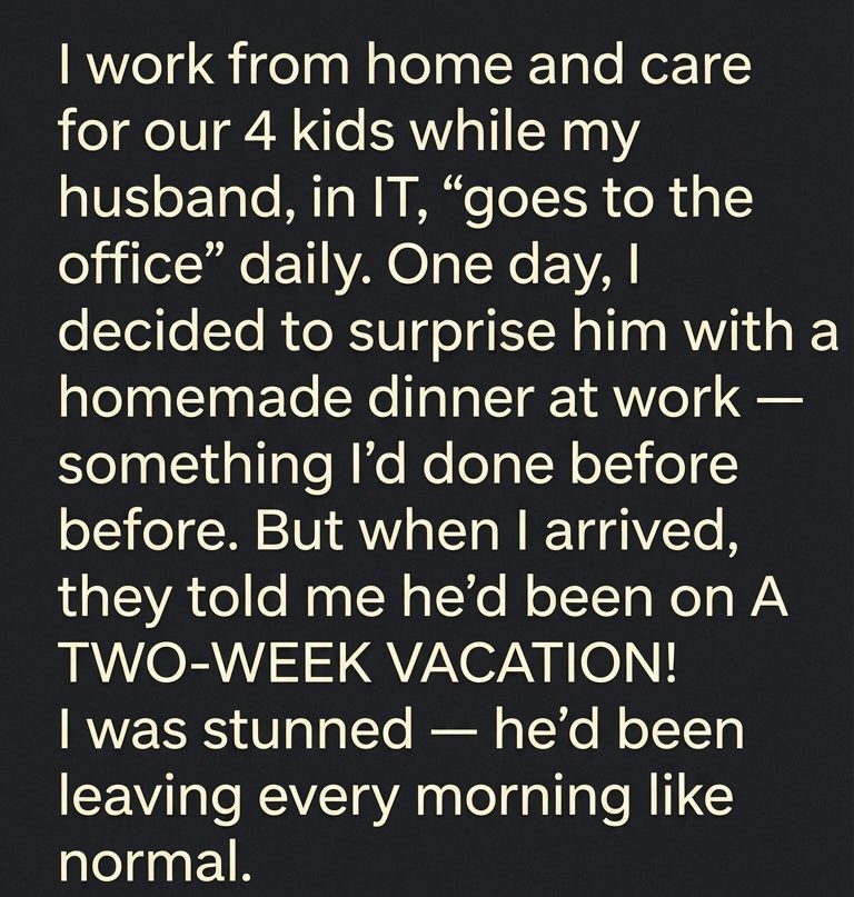 I planned to surprise my husband at work with lunch, but instead found out he was on vacation. Confused and suspicious, I followed him the next day and uncovered a shocking secret at my sister’s house. What I found left me questioning everything I thought I knew about my marriage and my family.