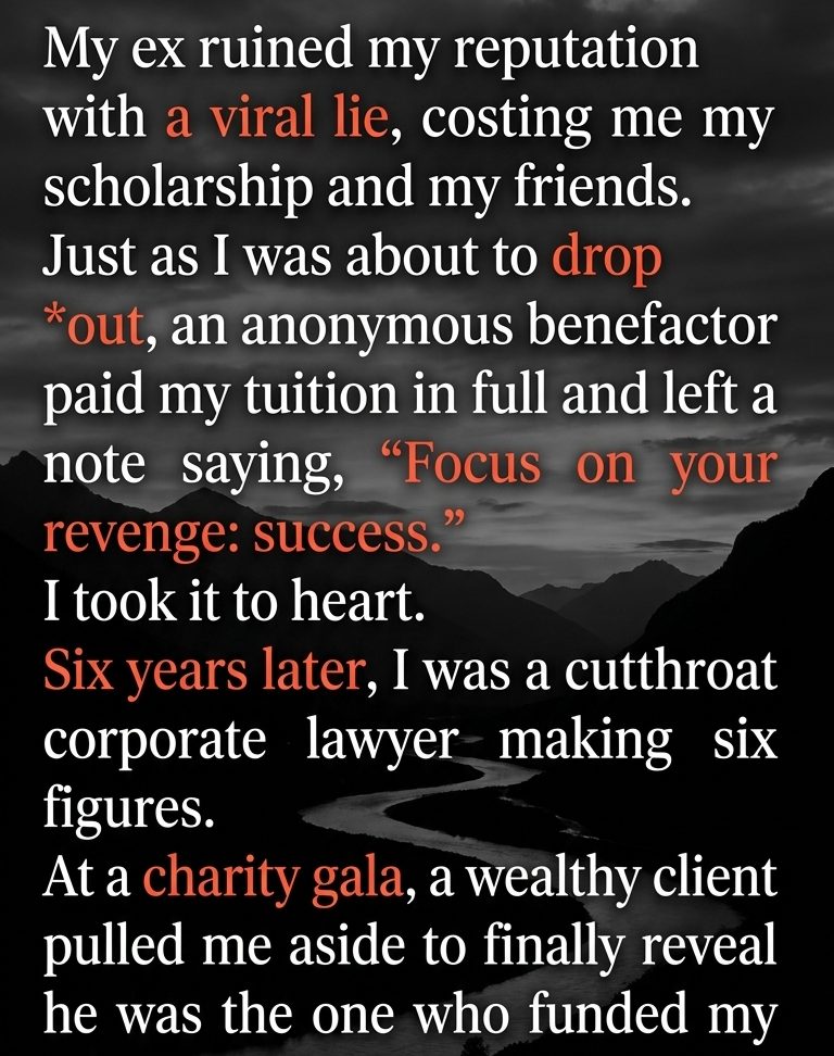 Silas offered a calm, predatory smile. He gestured toward a quiet balcony overlooking the city skyline, and my feet followed him on autopilot. My mind was racing back to that cramped dorm room six years ago, holding the cashier’s check that saved my life. Focus on your revenge: success.