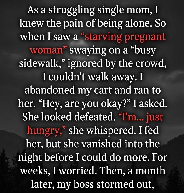 For weeks after that, I looked for her face in every crowd, but life kept needing me—homework, bills, sick days, my boss’s endless requests—and the memory just got folded into the pile of things I worried about at three in the morning.